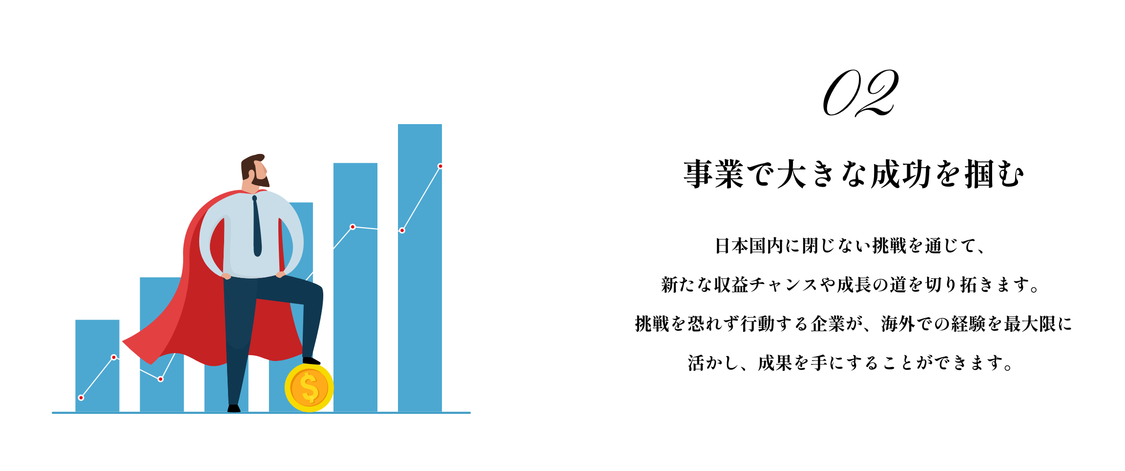 初めての海外展開でも、確かな経験をもとに着実な一歩を後押しします。